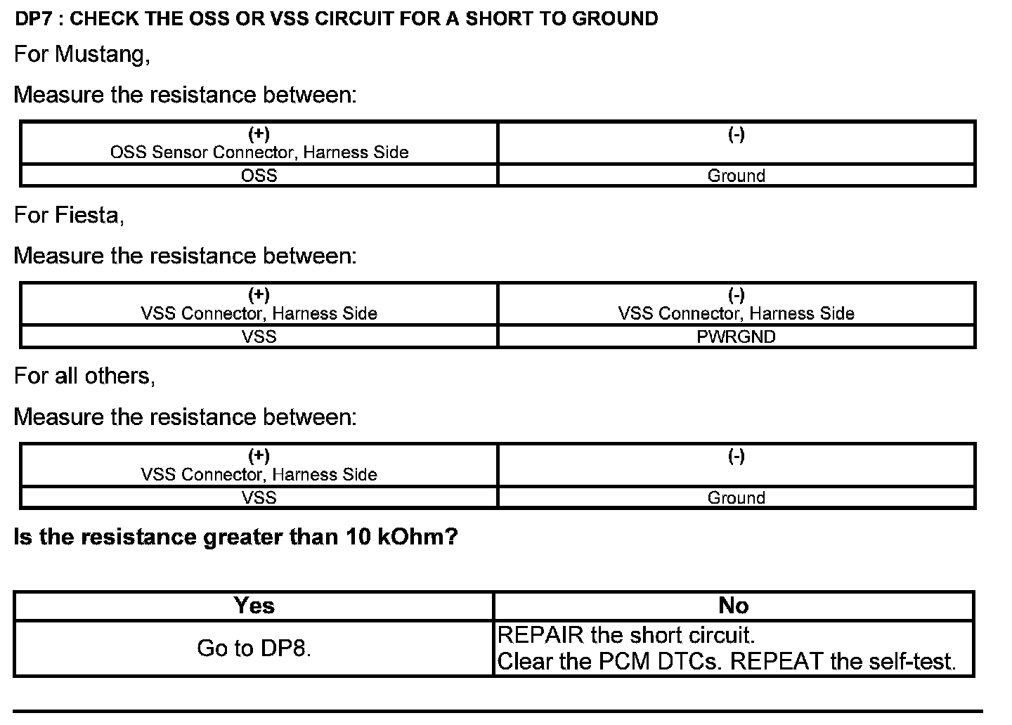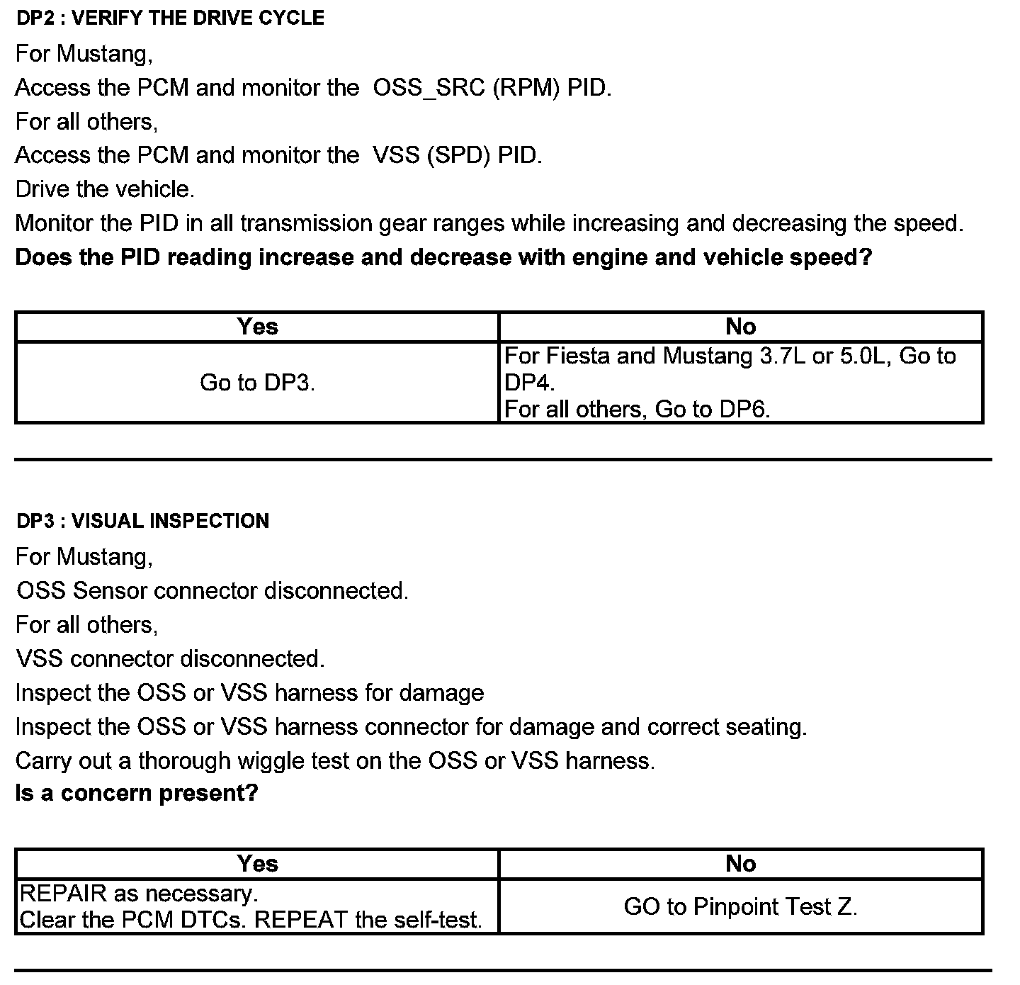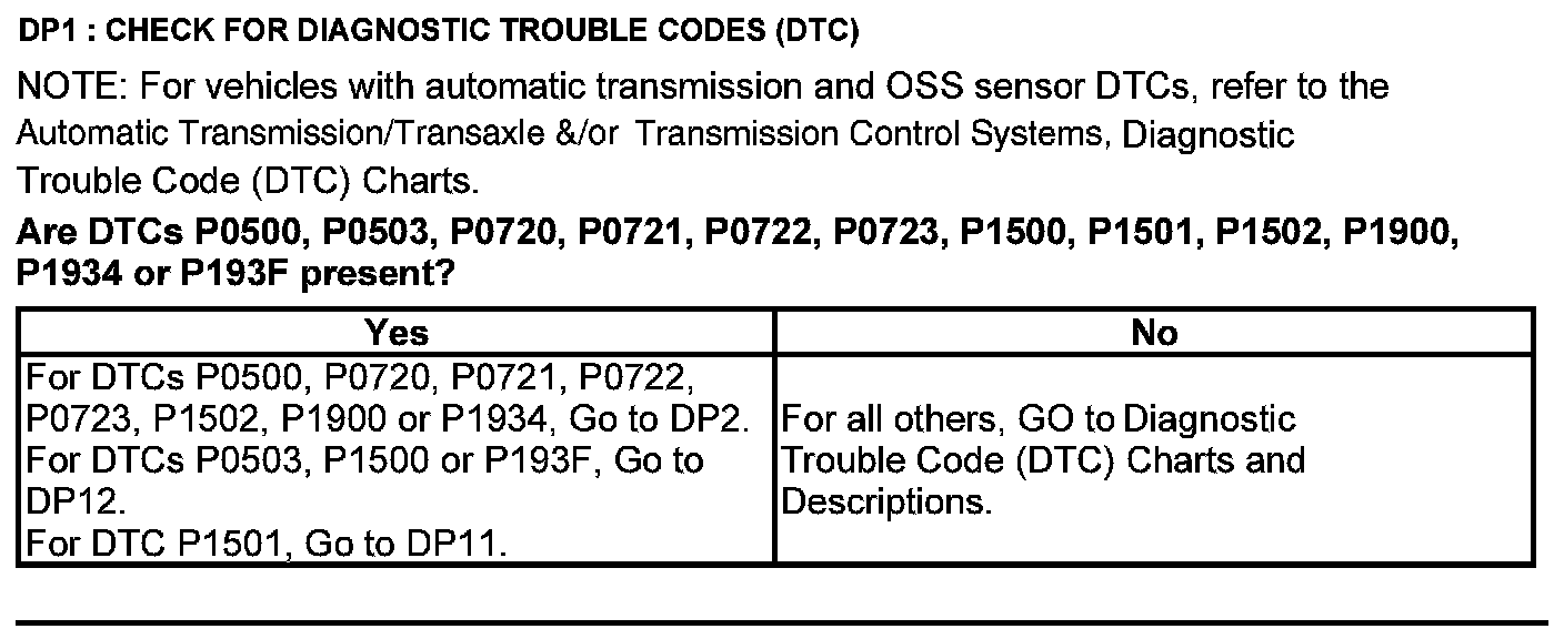 Test DP: Output Shaft Speed (OSS) Sensor/Vehicle Speed Sensor ( VSS)