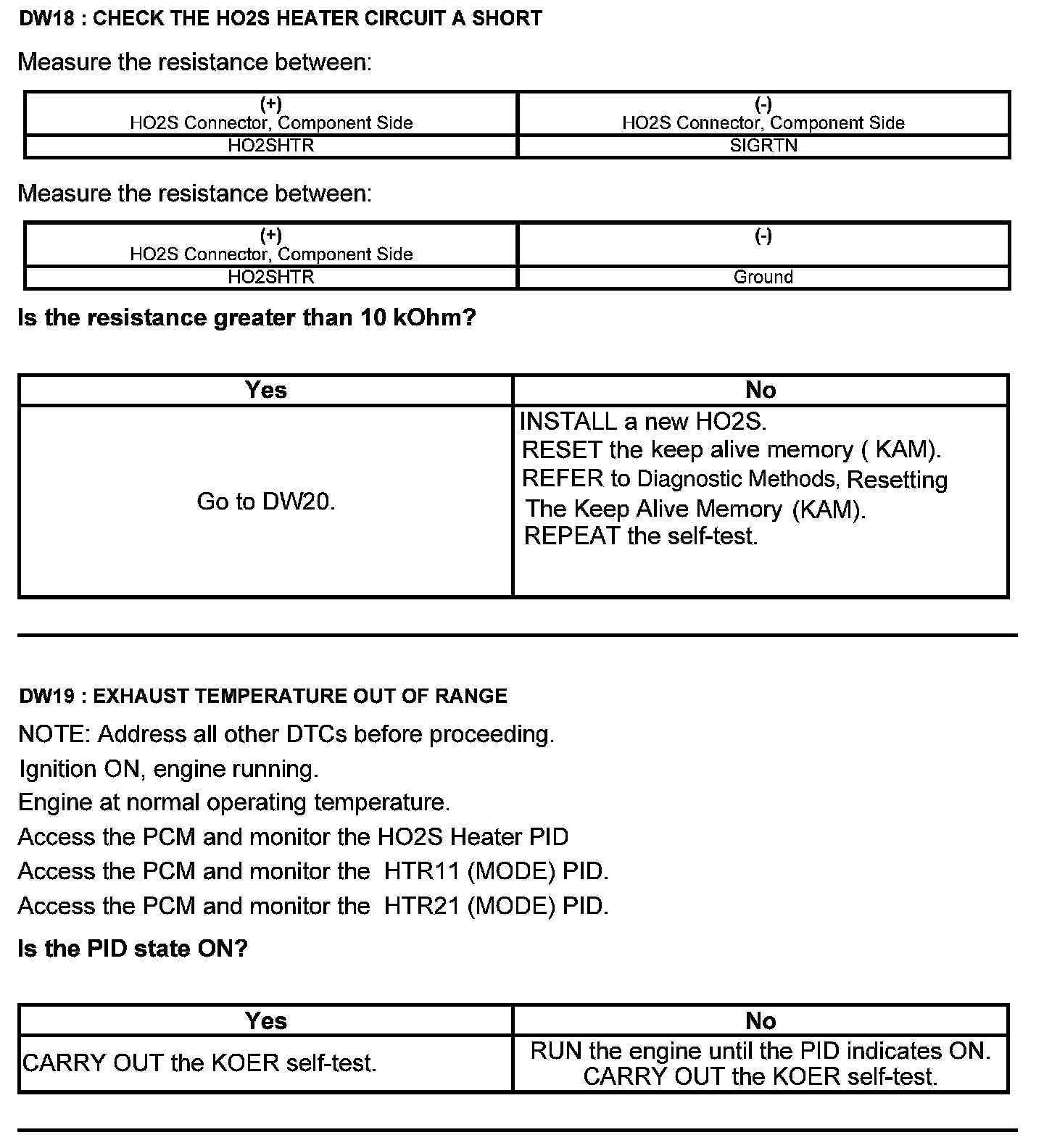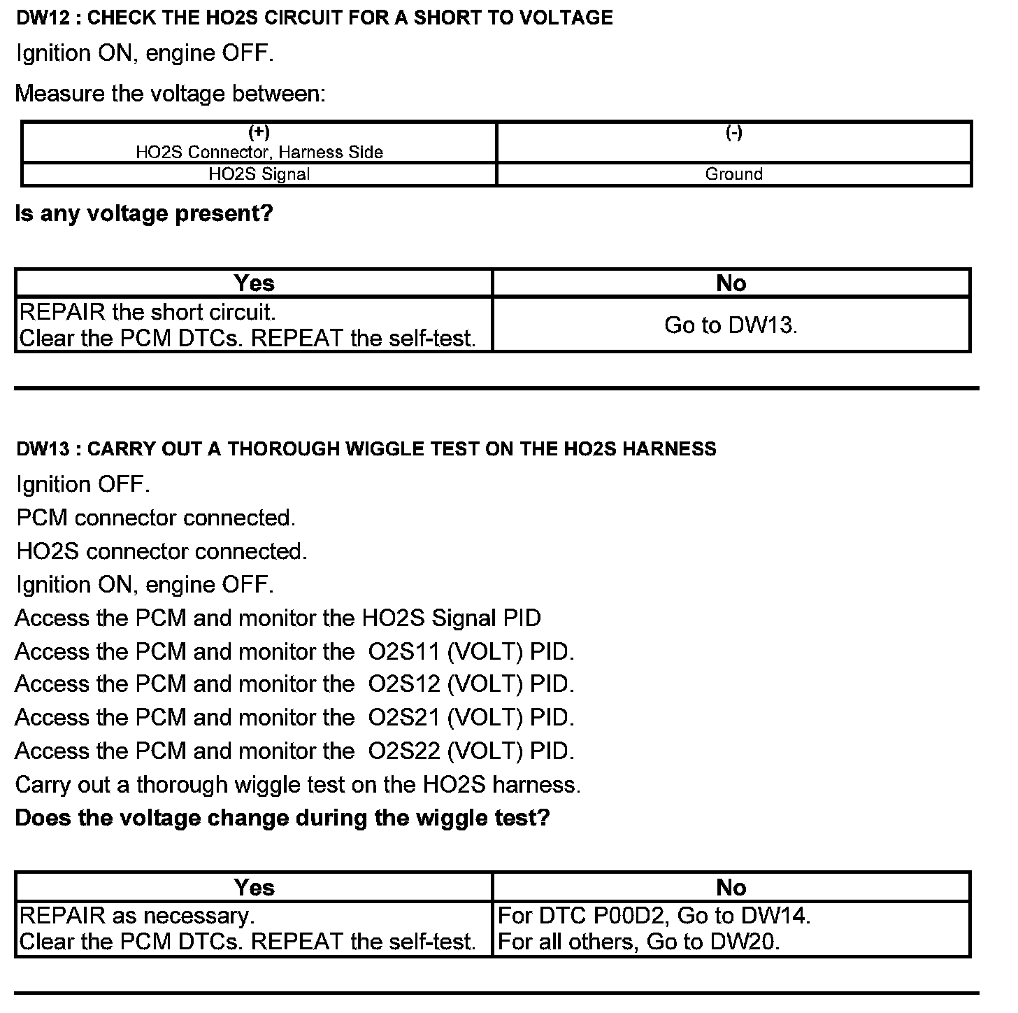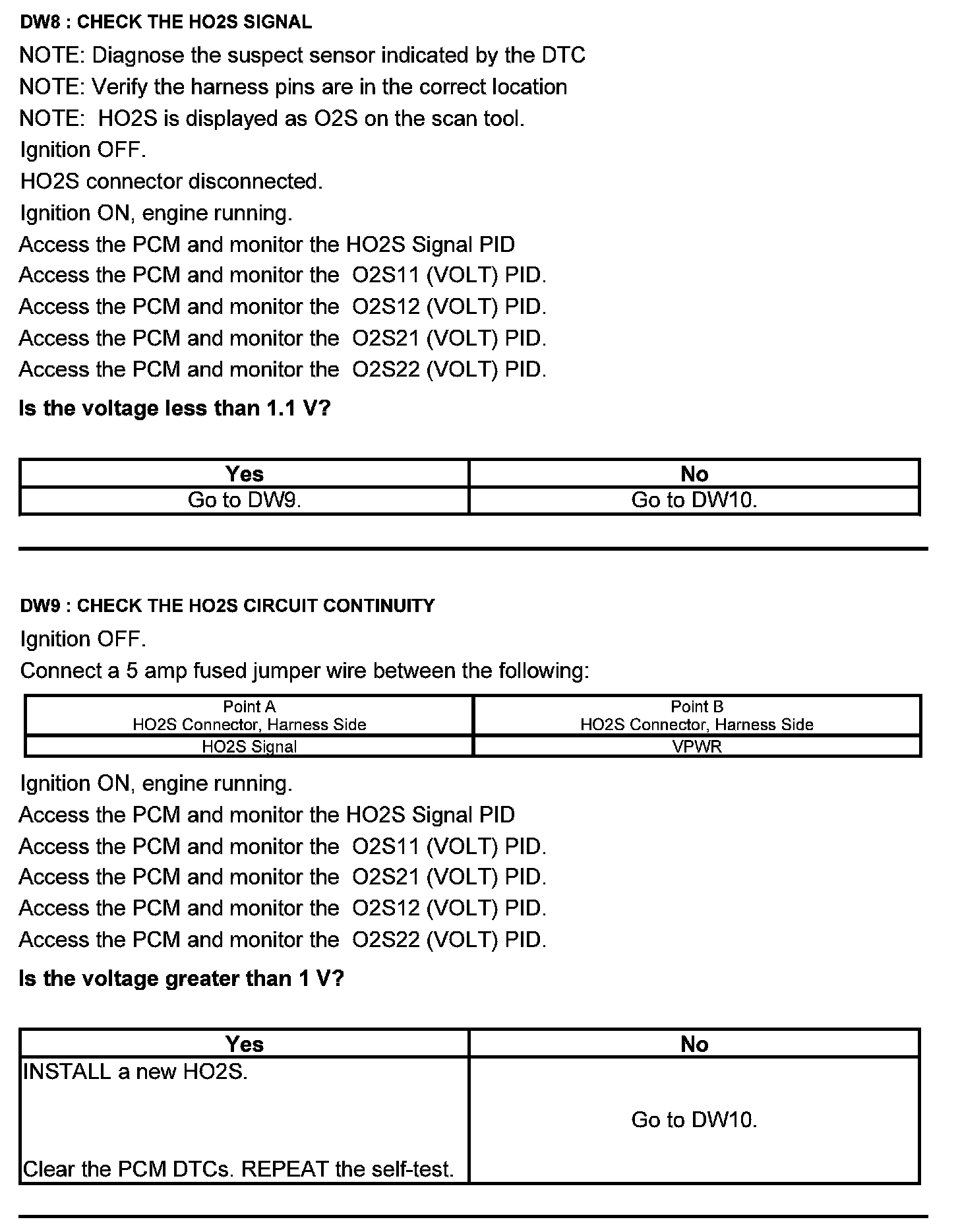 Test DW: Heated Oxygen Sensor (HO2S)