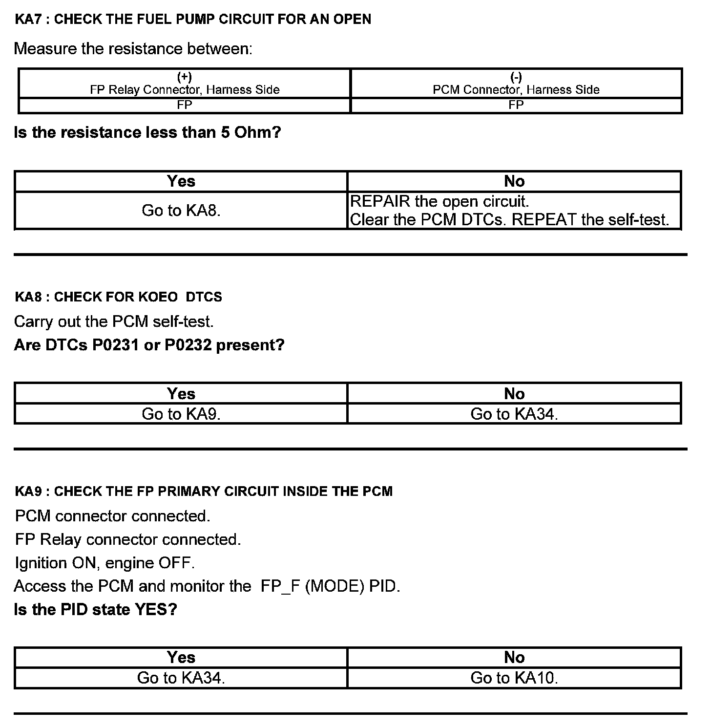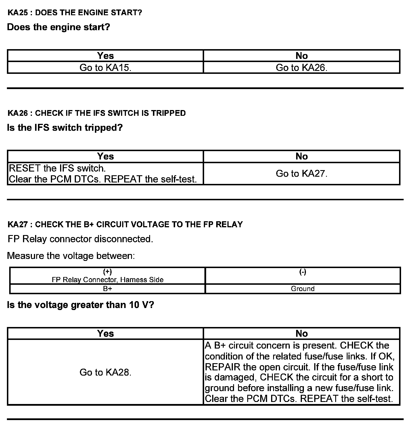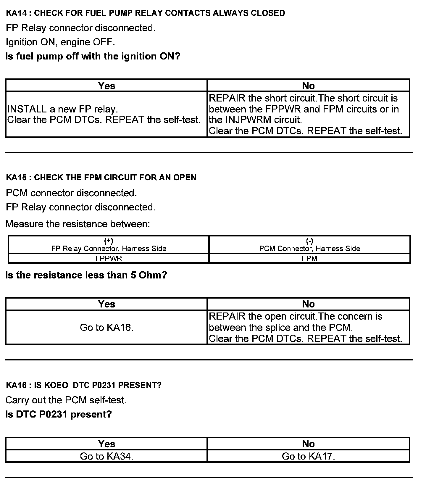 Test KA: Fuel Pump (FP) Relay