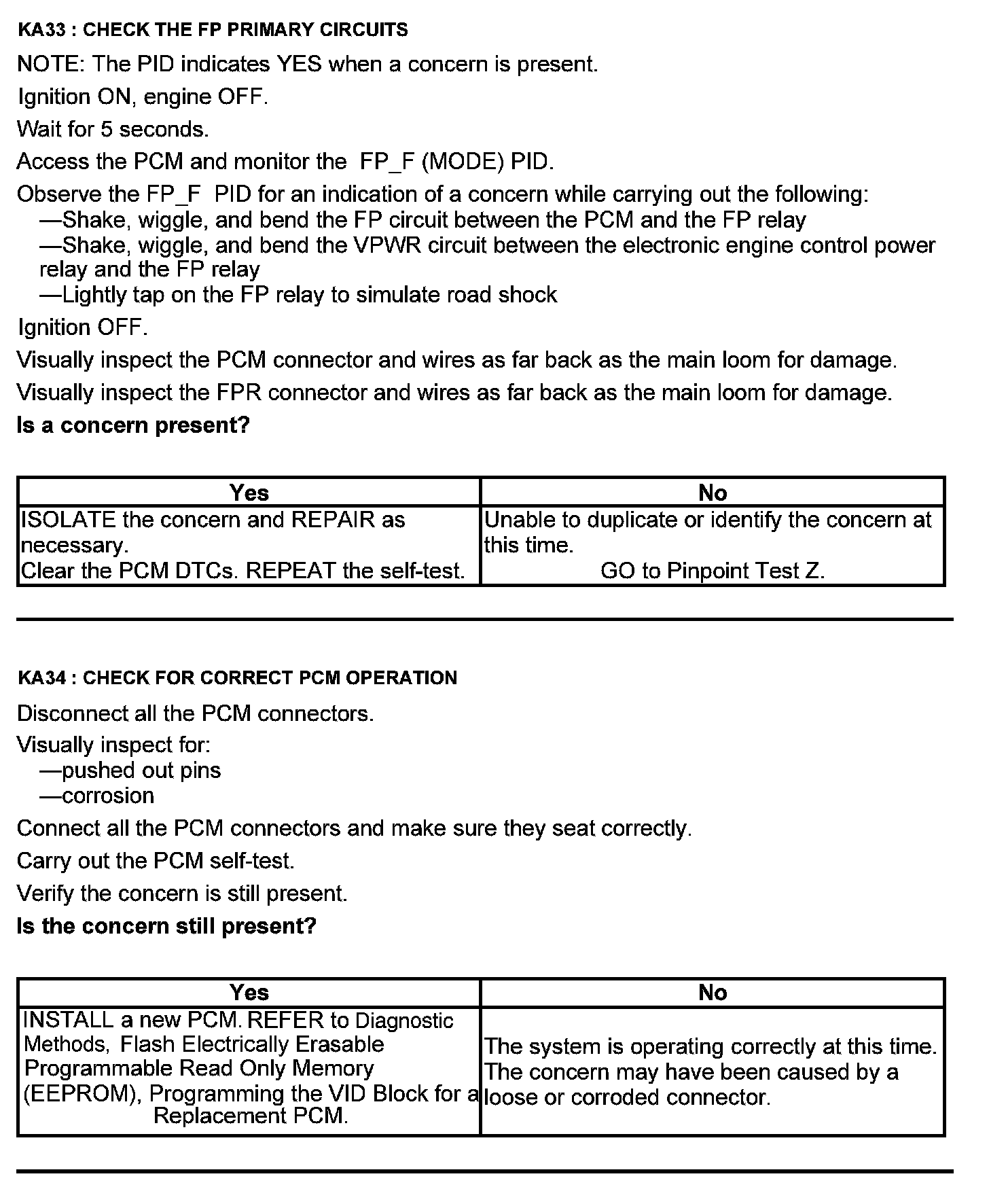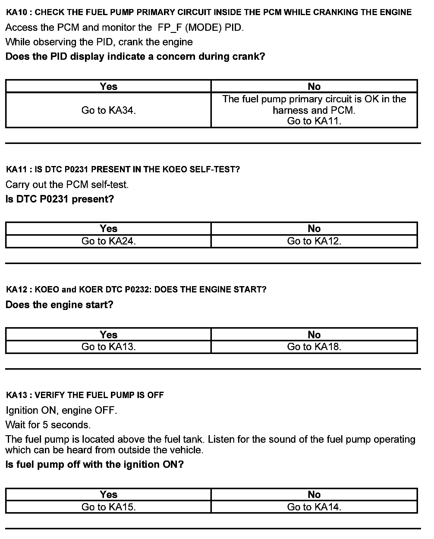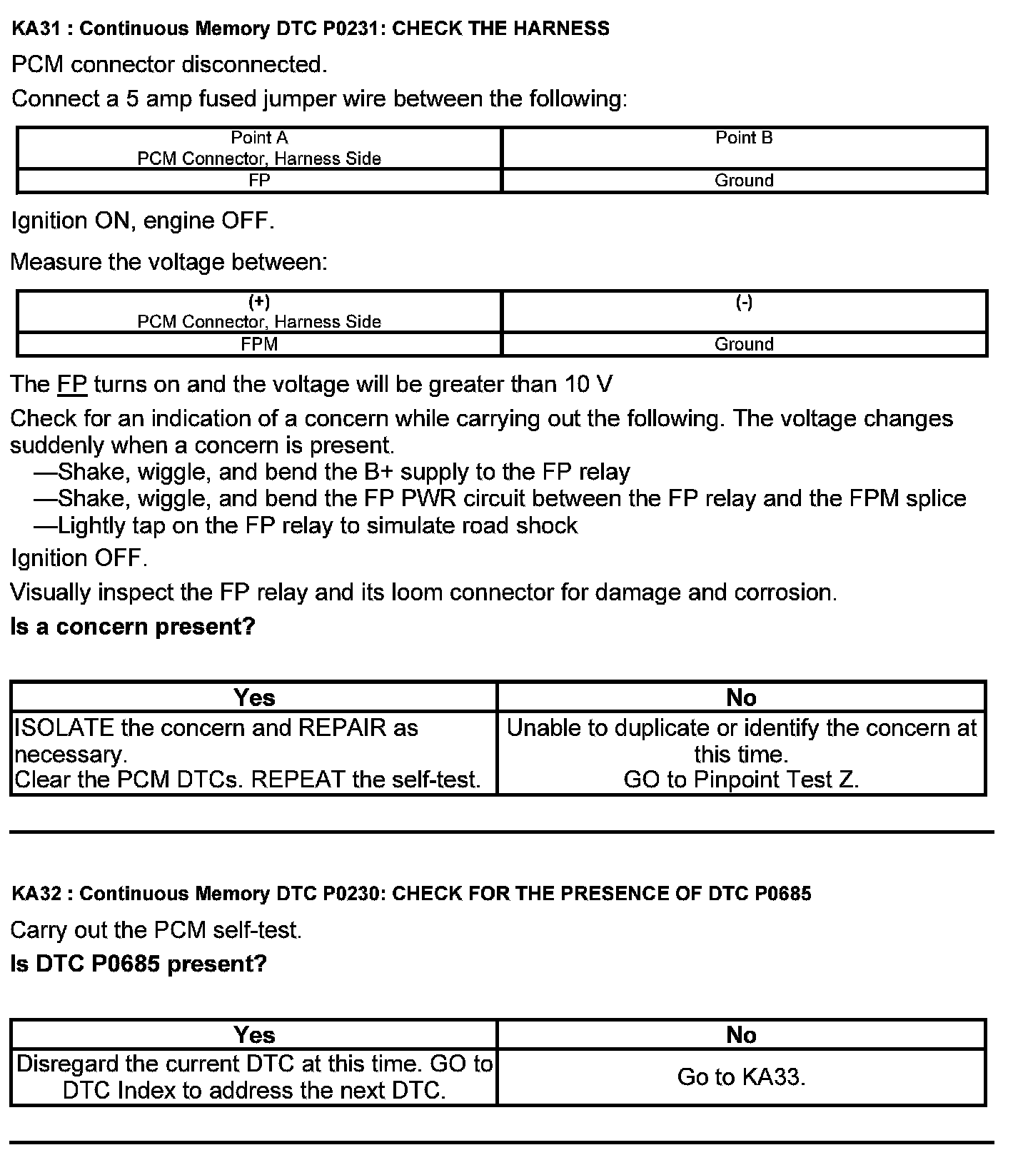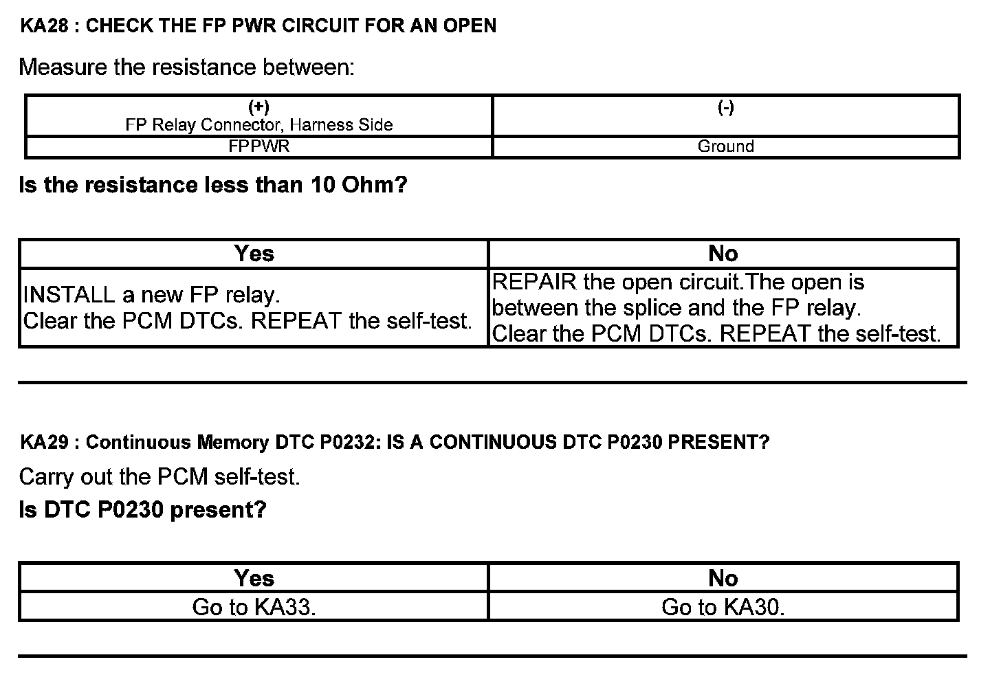 Test KA: Fuel Pump (FP) Relay