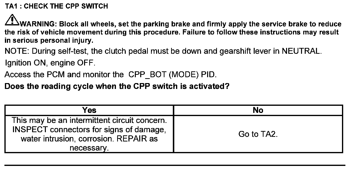 Test TA: Clutch Pedal Position (CPP#2) Switch