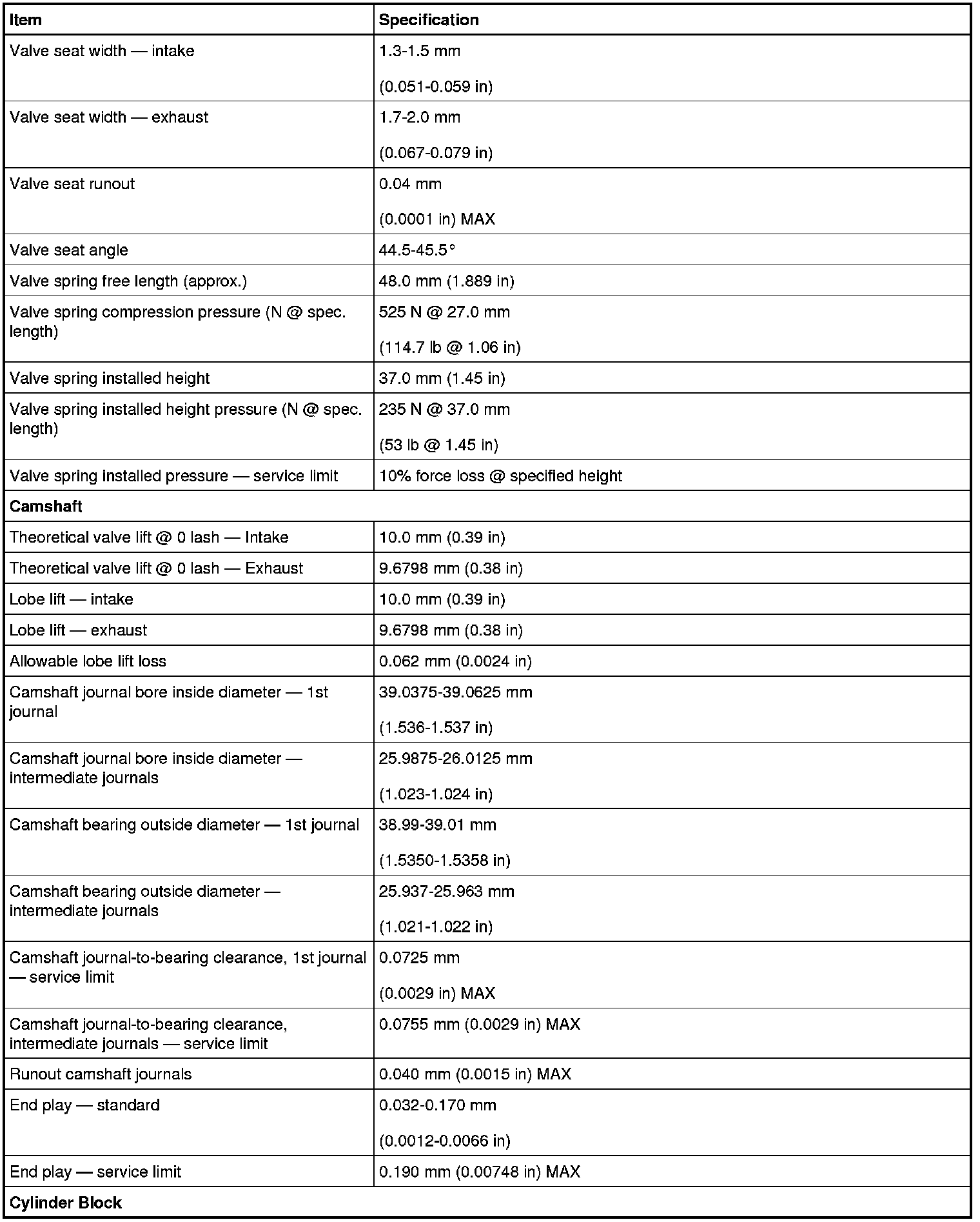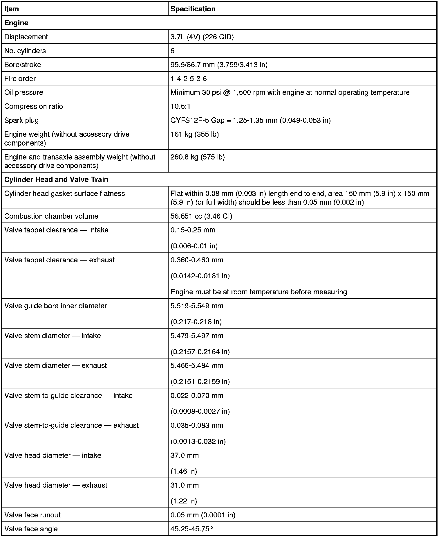 Engine Specifications