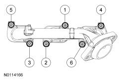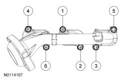 Using a new gasket, install the RH exhaust manifold and 6 new nuts. Tighten in 2 stages in the sequence shown: