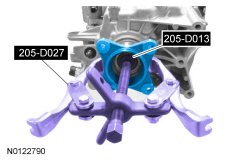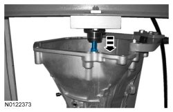 33. NOTICE: The center support must be pulled up evenly or damage to the center support or transmission case can occur.