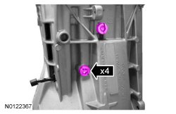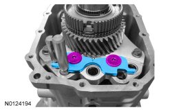 38. Remove the 2 LH and the 2 RH shift fork pivot bolts.