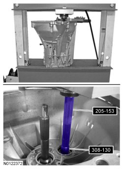 NOTICE: Use an assistant when pressing out the input shaft, do not allow the input shaft to drop during removal.