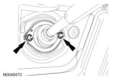 4. If equipped, remove the 4 nuts (2 shown) and the strut tower cross brace.