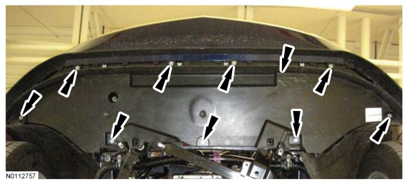 14. Remove the 9 bolts and the lower air deflector.
