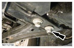 - Remove and discard the lower ball joint nut and bolt.