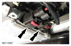 19. Disconnect the 2 Electronic Power Assist Steering (EPAS) electrical connectors and the pin-type retainer.