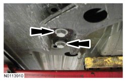 Tighten the 2 nuts for the crossmember brace to 65 Nm (48 lb-ft).