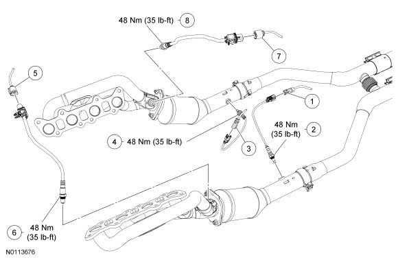 NOTE: For Heated Oxygen Sensor (HO2S) removal and installation, refer to Heated Oxygen Sensor (HO2S) .