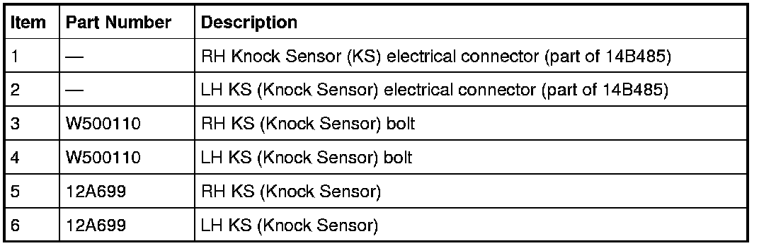 NOTE: The intake manifold must be removed to access the KS (Knock Sensor). For additional information, refer to Engine.