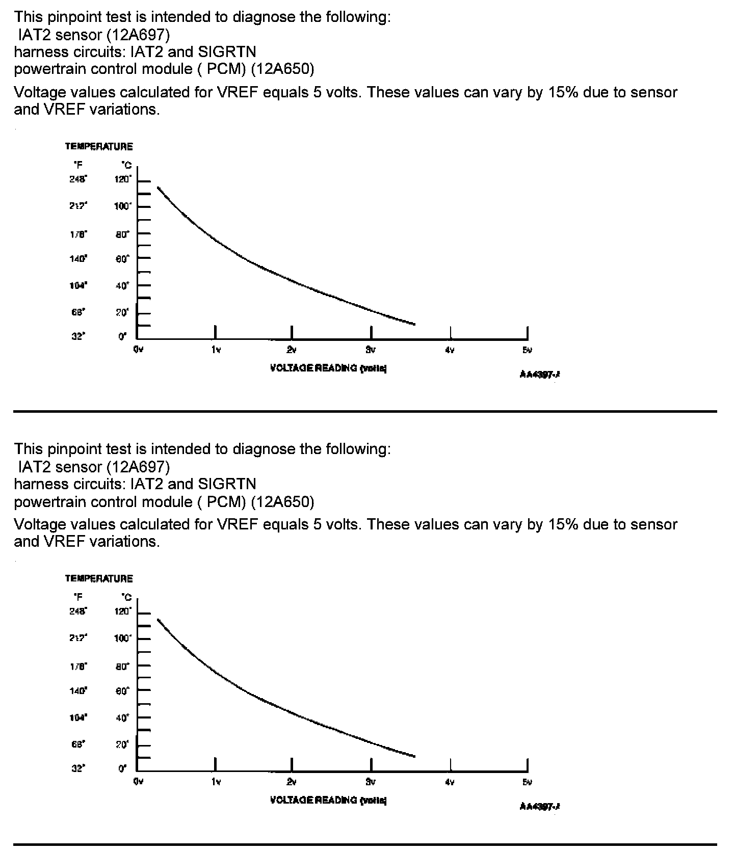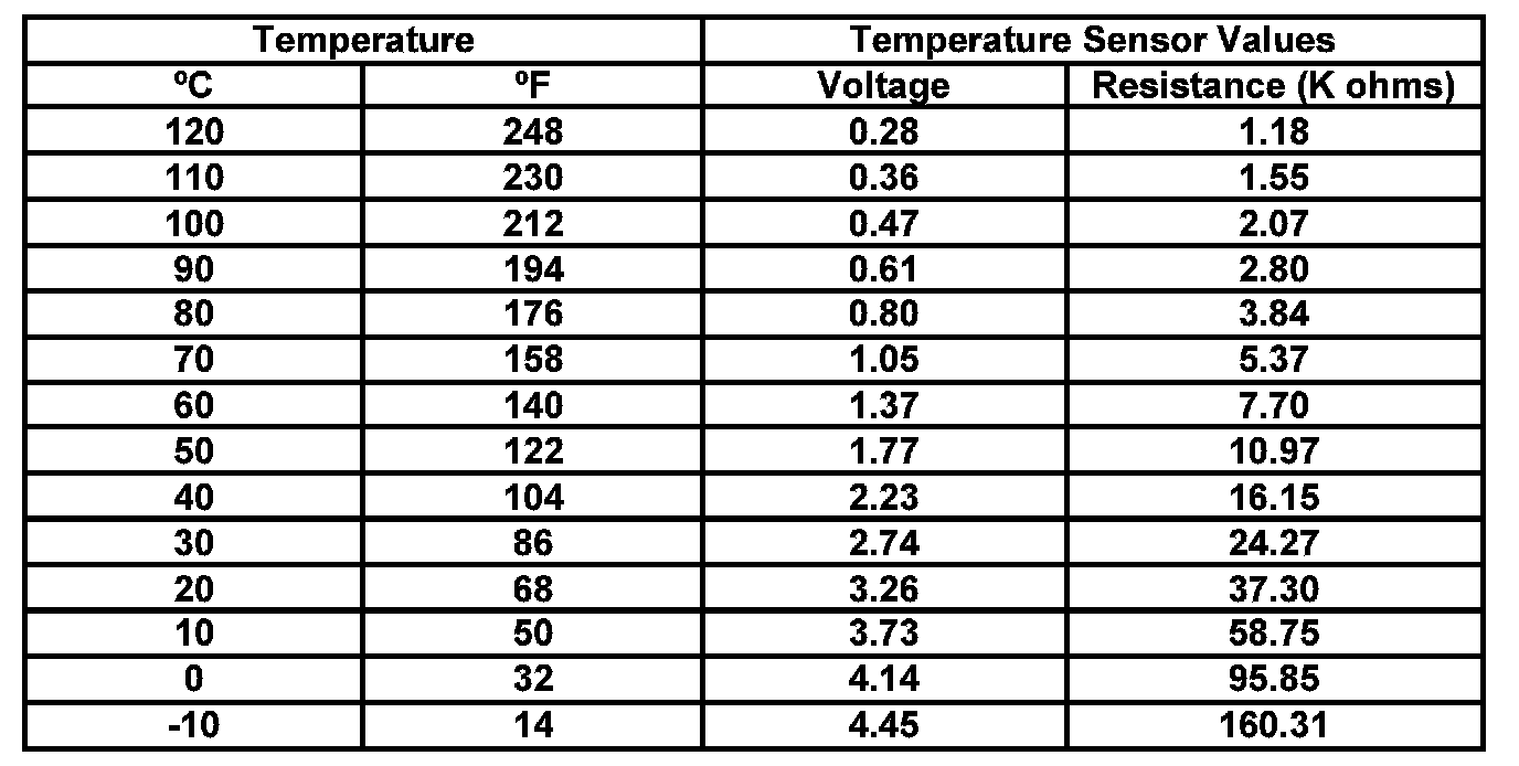 TEMPERATURE SENSOR VOLTAGE AND RESISTANCE SPECIFICATIONS