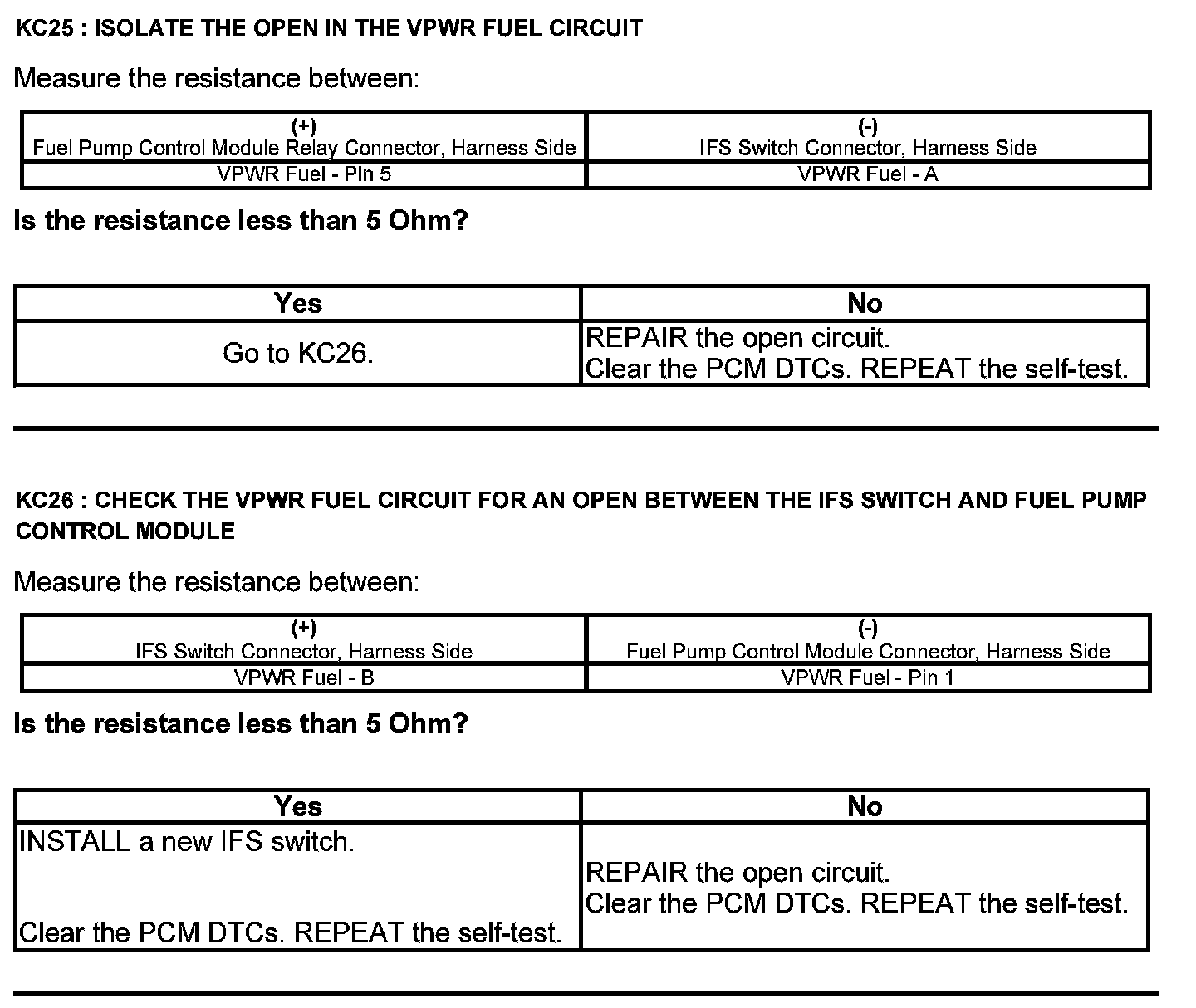 Test KC: Fuel Pump Control Module