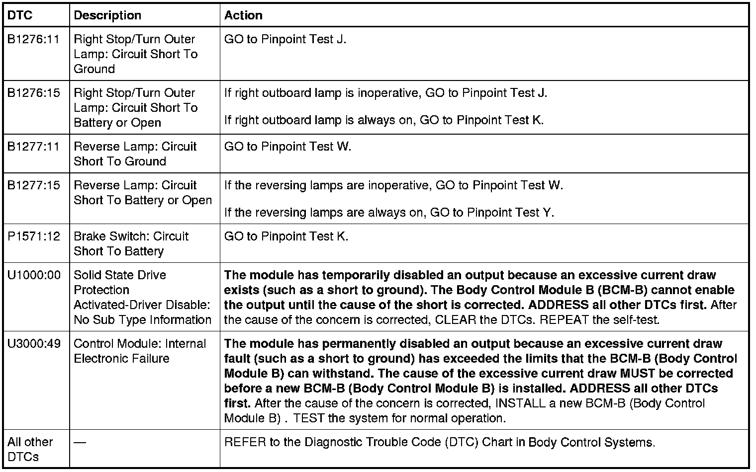 Body Control Module B (BCM-B) DTC Chart