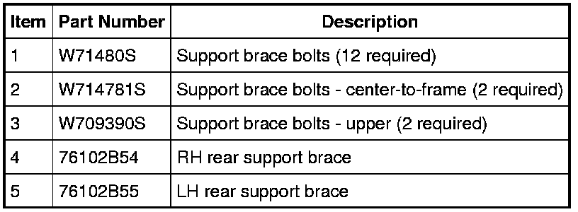 NOTE: The 2 rear support braces must be removed and installed at the same time.