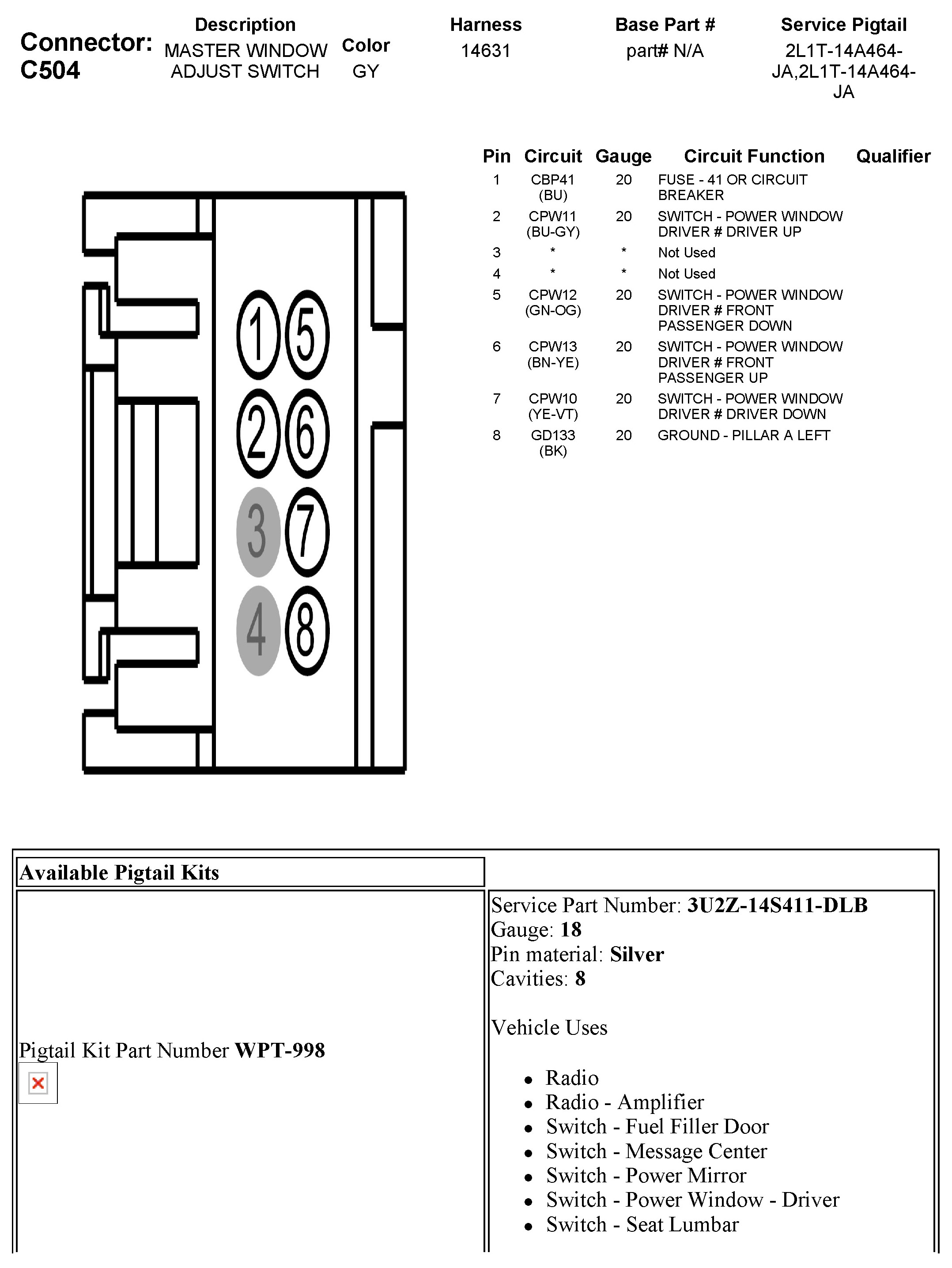 C504 Master Window Adjust Switch
