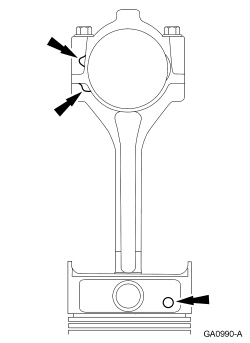 1. NOTE: The connecting rod must be installed into the piston with identification markings toward the front.