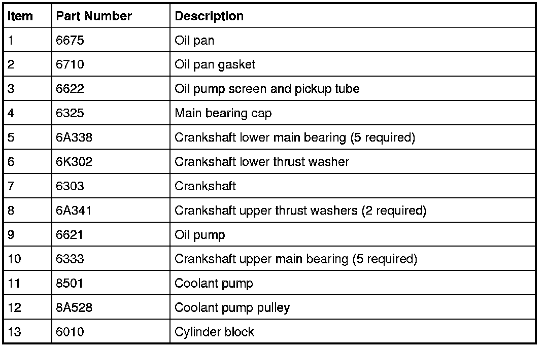 4. NOTE: Before assembling the cylinder block, all sealing surfaces must be free of chips, dirt, paint and foreign material. Also, make sure the coolant and oil passages are clear.