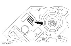 NOTICE: During engine repair procedures, cleanliness is extremely important. Any foreign material, including any material created while cleaning gasket surfaces, that enters the oil passages, coolant passages or the oil pan, can cause engine failure.