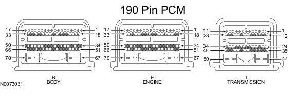 Powertrain Control Module (PCM) Connector - For PCM connector views or reference values, refer to Reference Values.