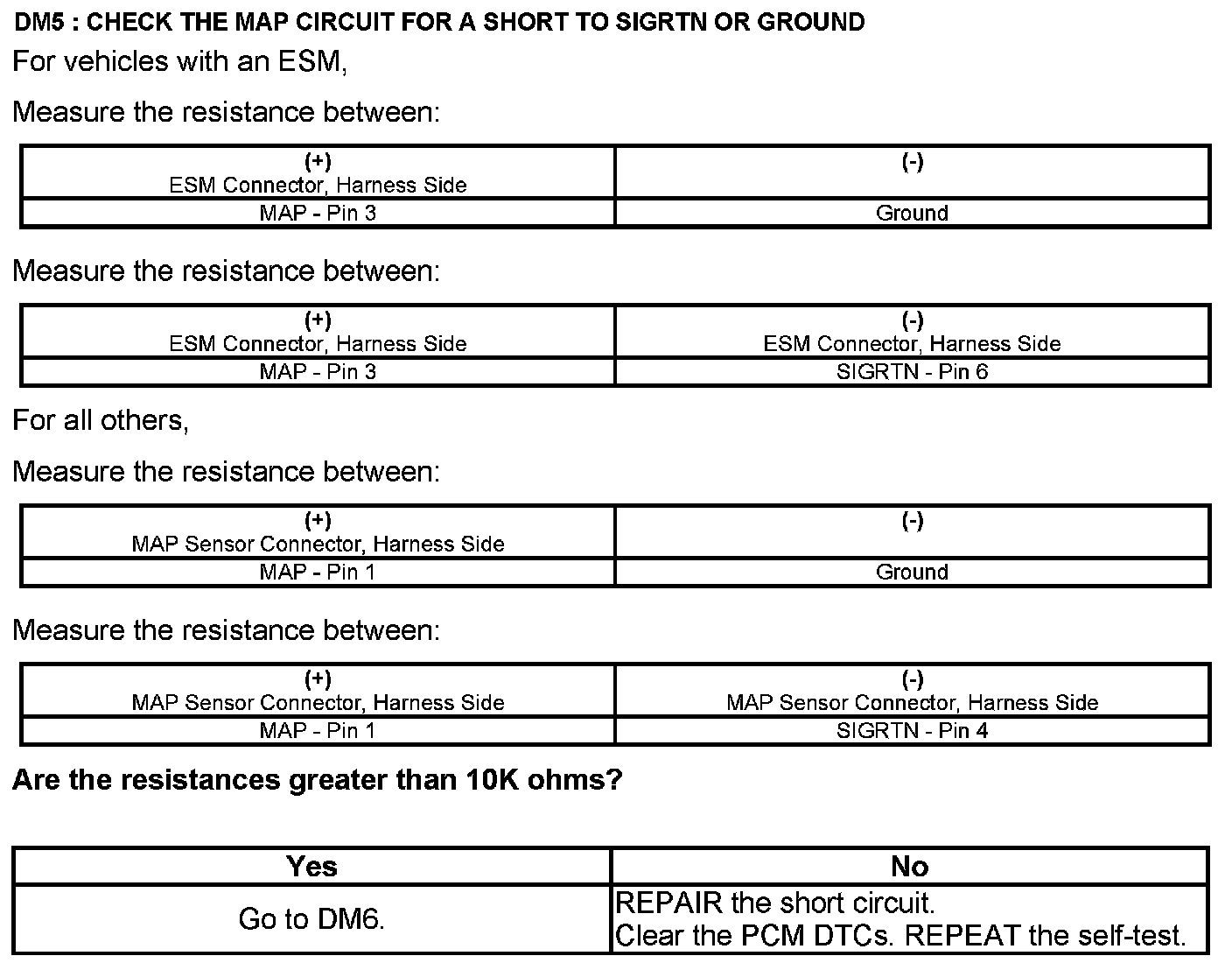 Test DM: Manifold Absolute Pressure (MAP) Sensor