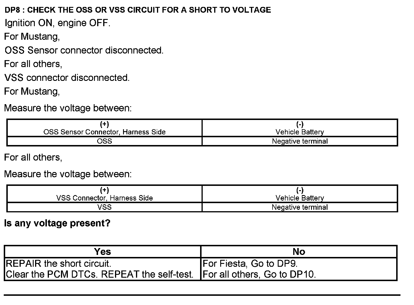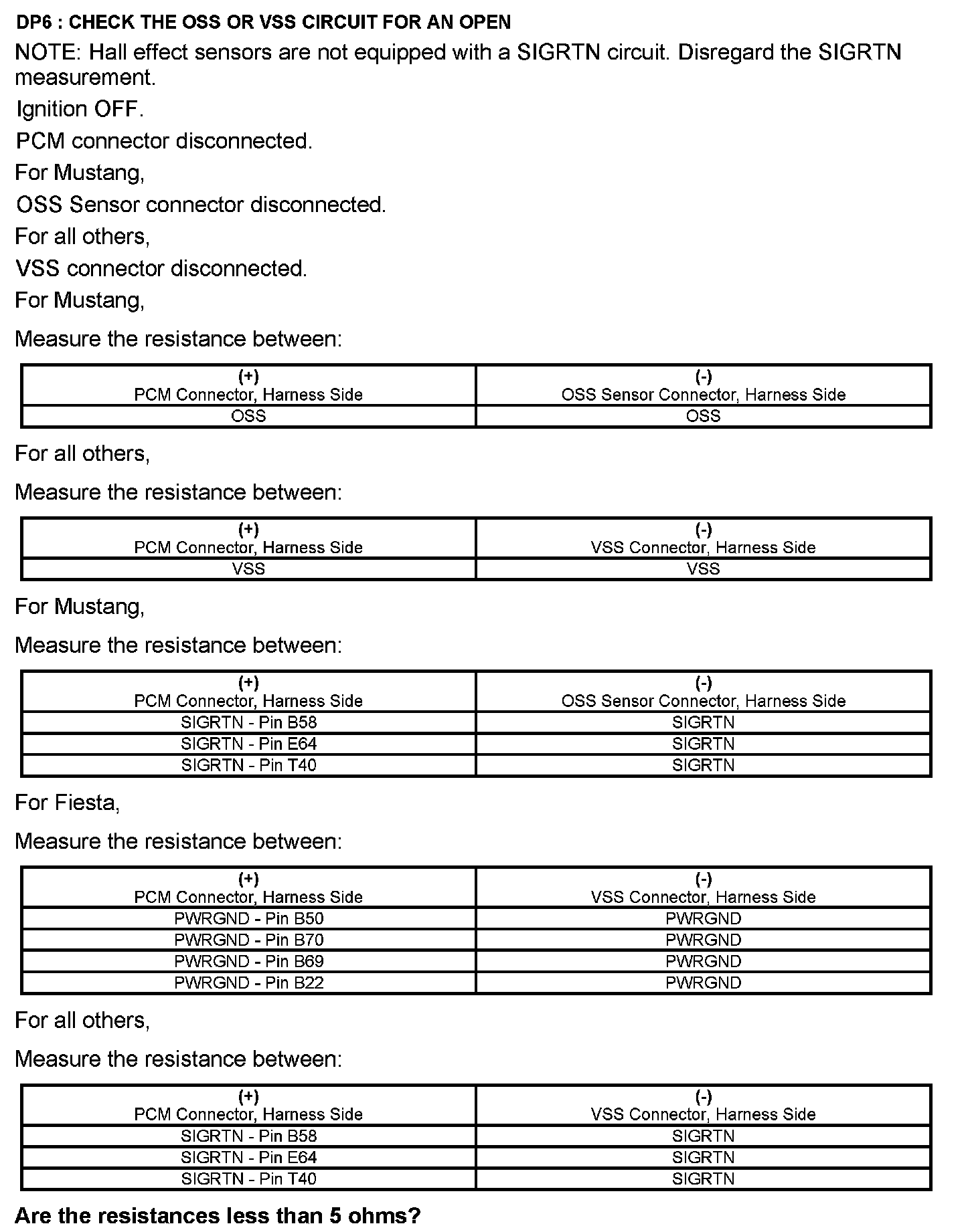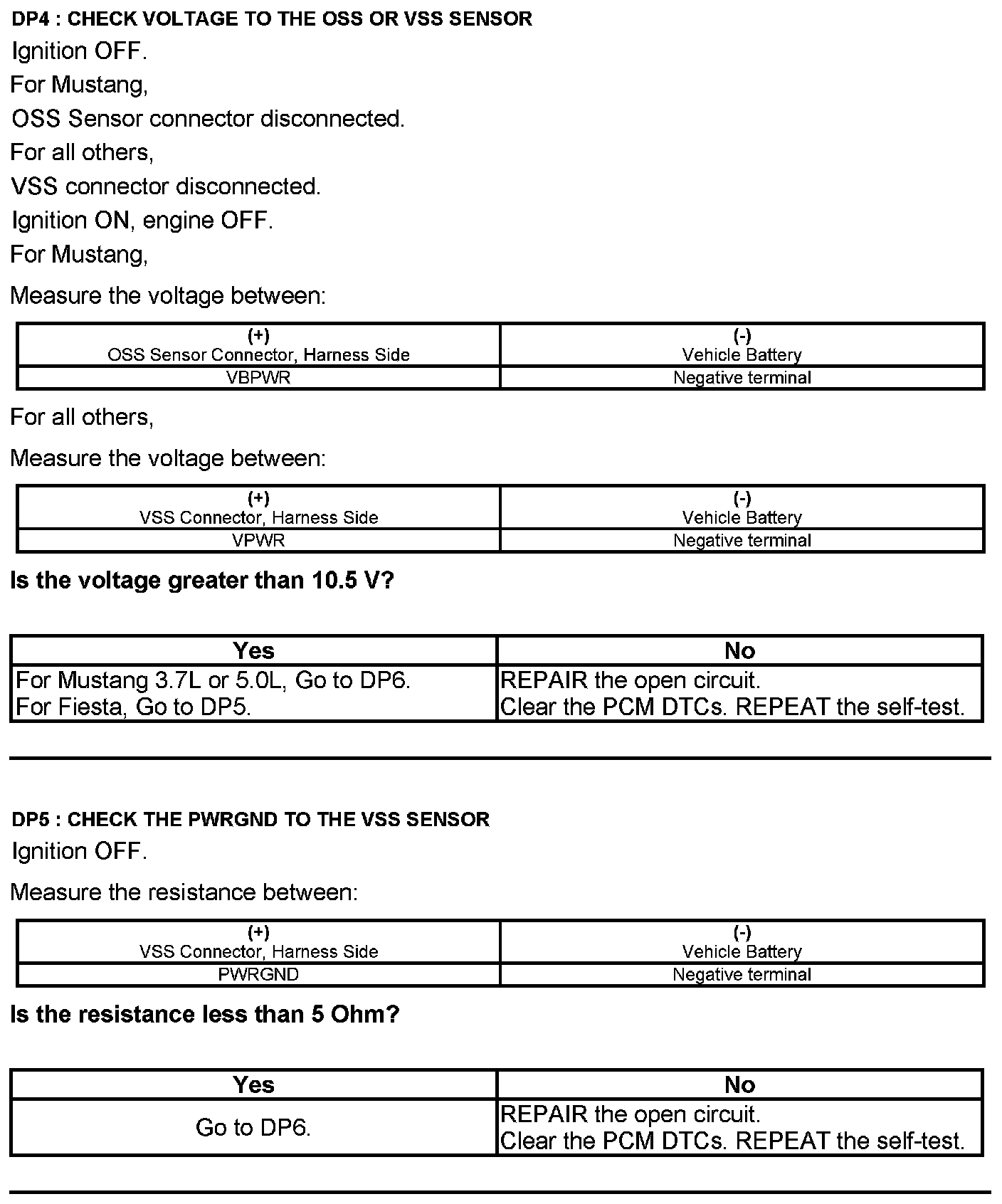 Test DP: Output Shaft Speed (OSS) Sensor/Vehicle Speed Sensor (VSS)