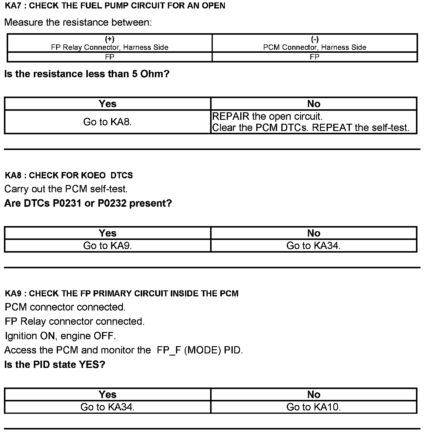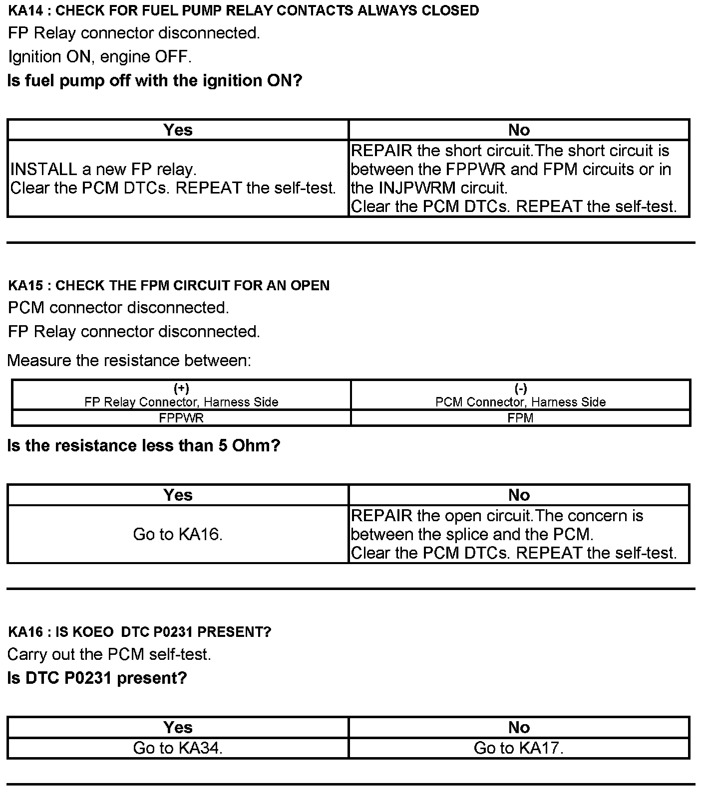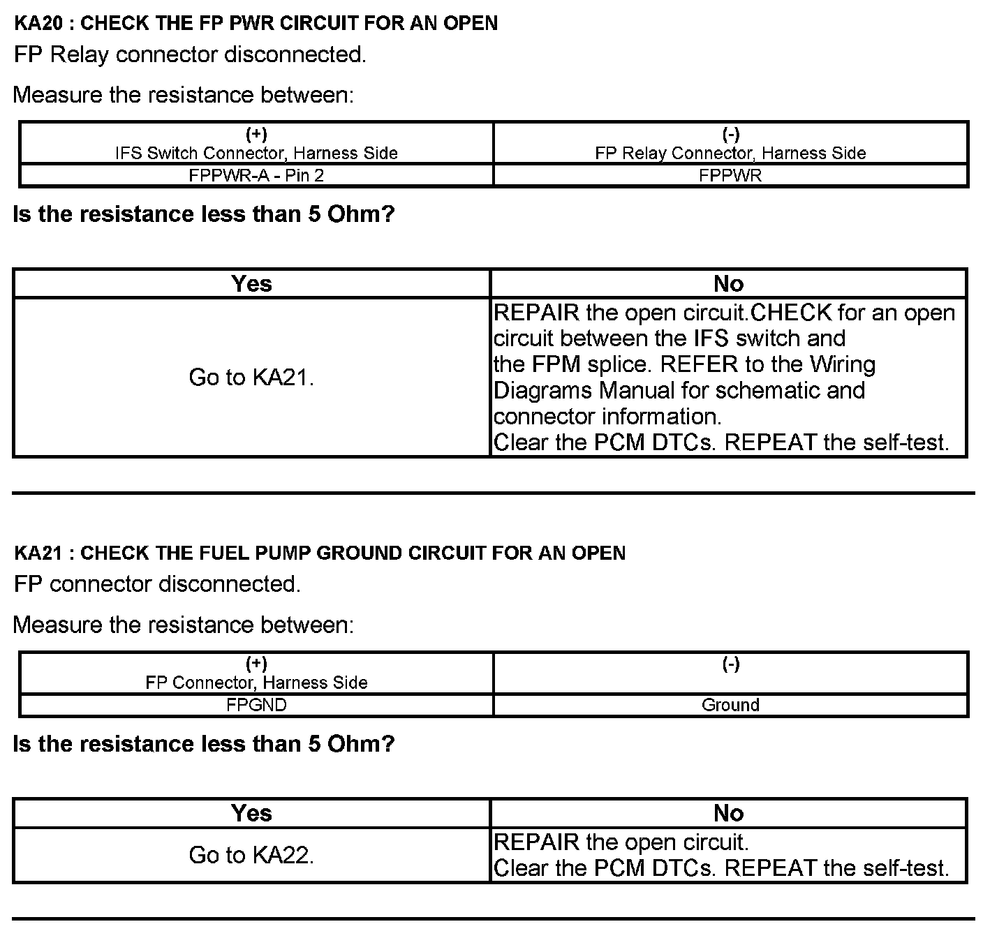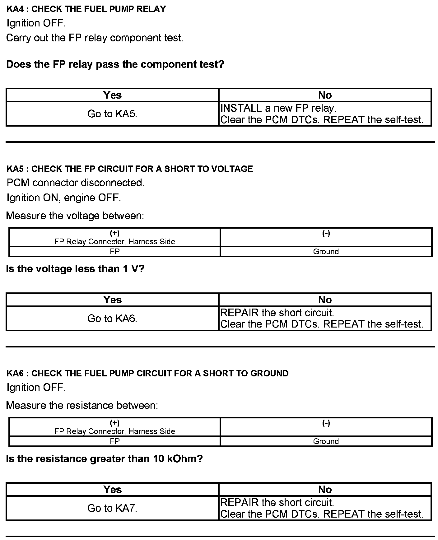 Test KA: Fuel Pump (FP) Relay