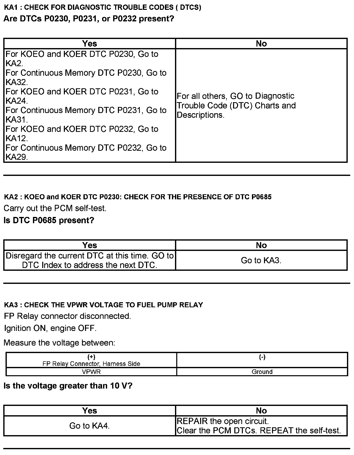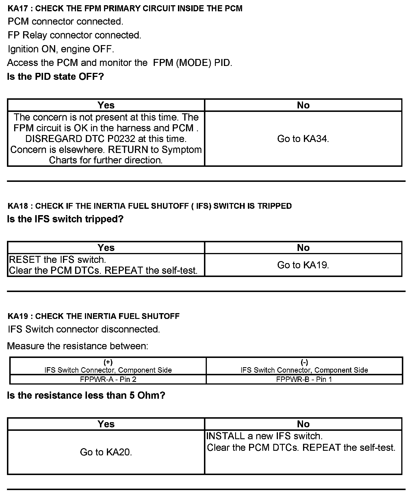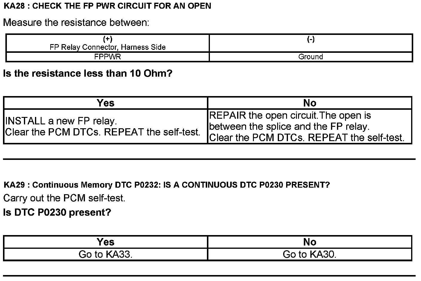 Test KA: Fuel Pump (FP) Relay