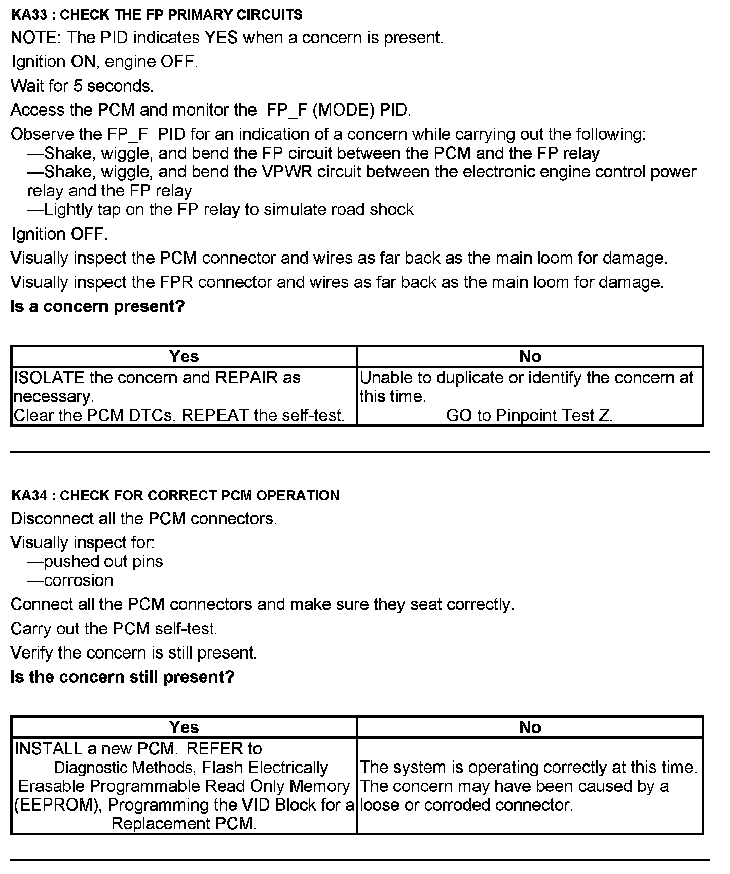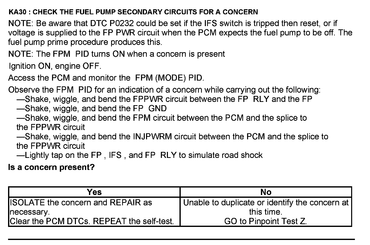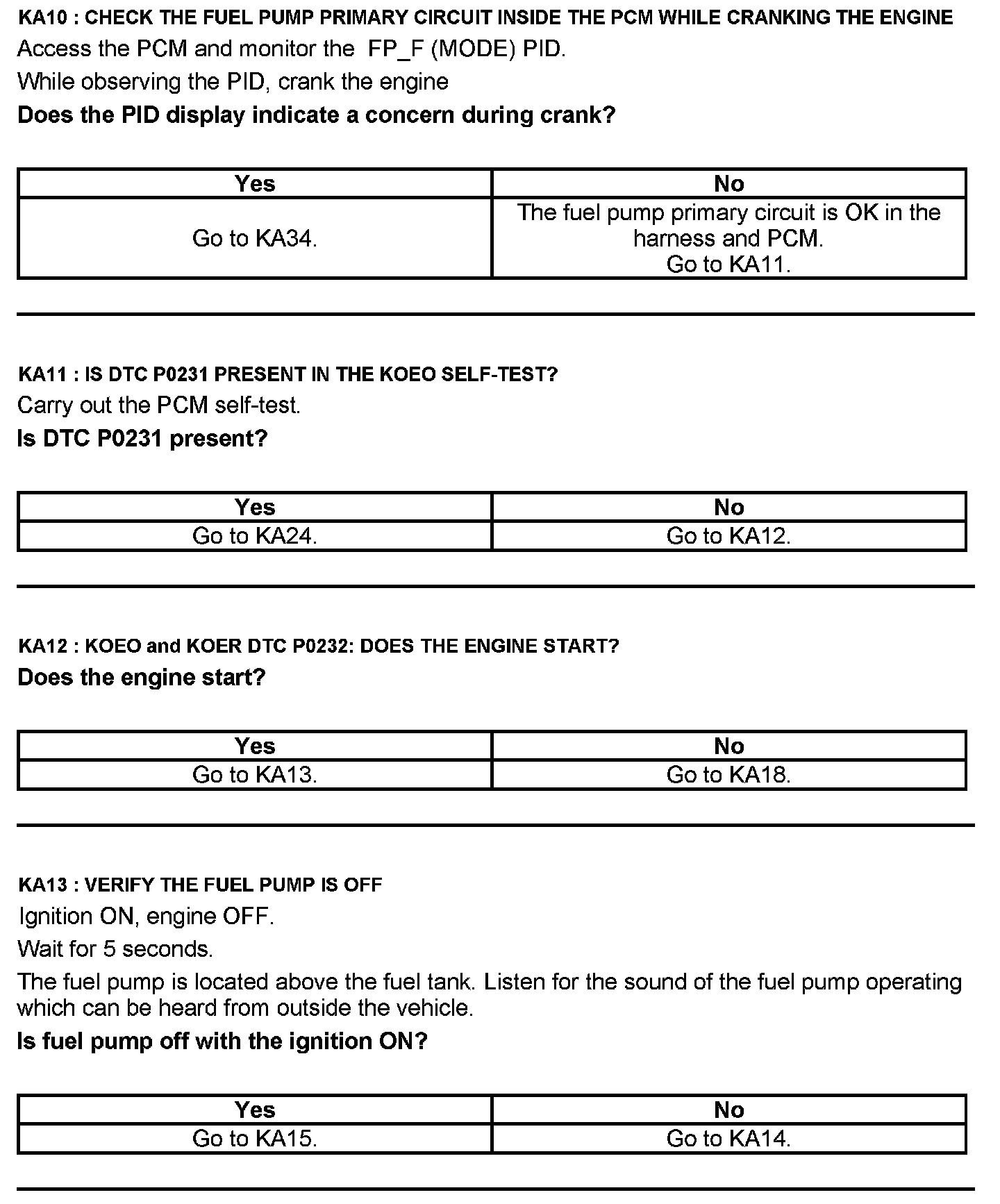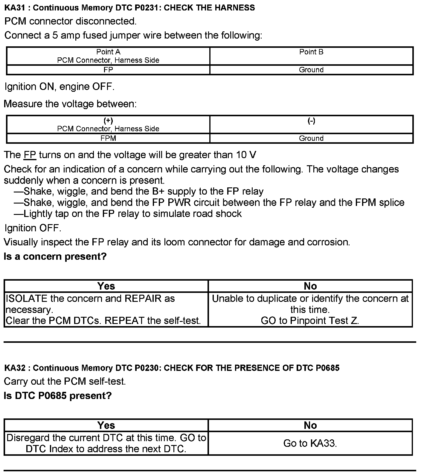 Test KA: Fuel Pump (FP) Relay