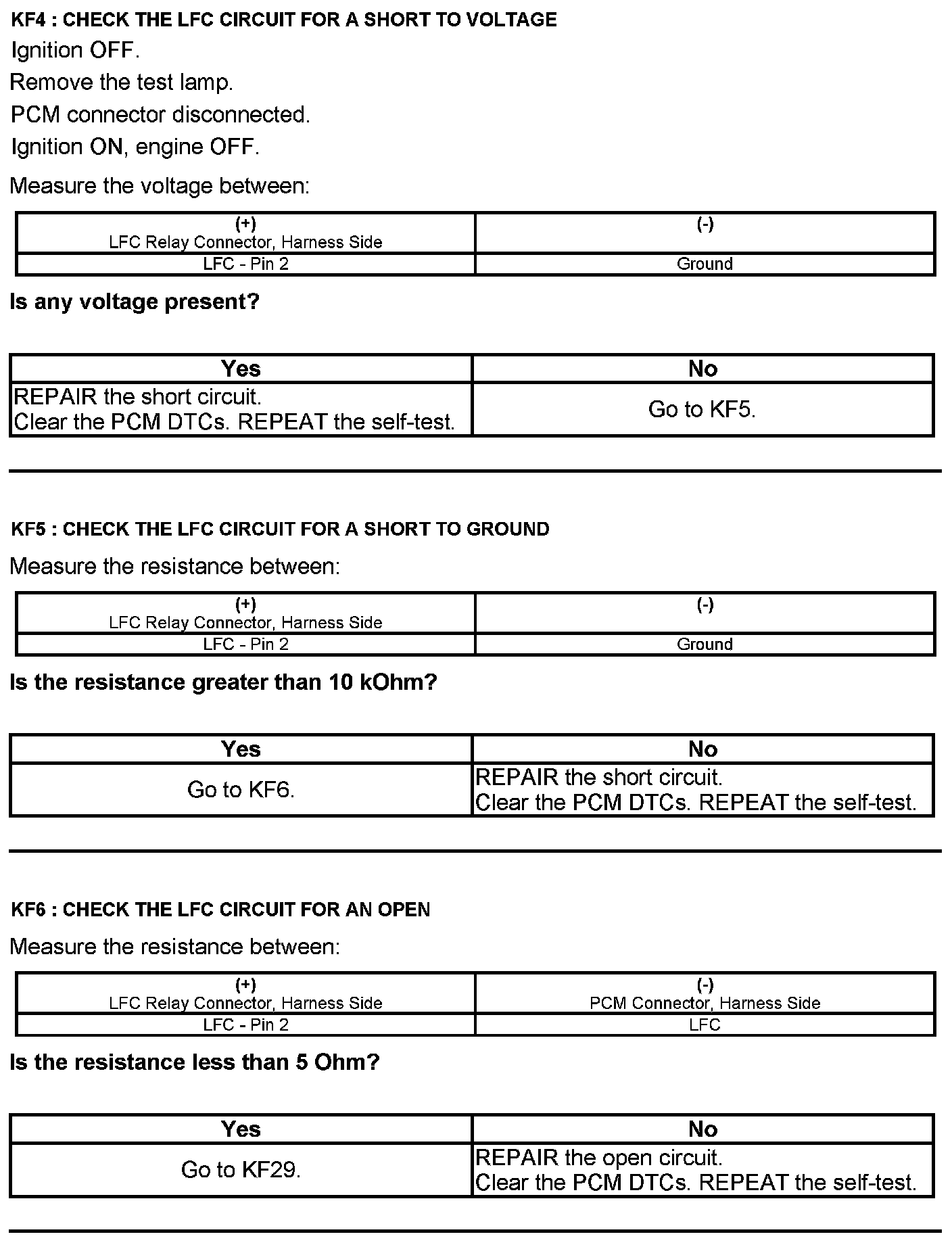 NOTE: The VPWR and LFC circuits may be reversed in the harness connector. Also, the LFC circuit may be wired to two separate relays. Refer to the Wiring Diagrams for additional information.