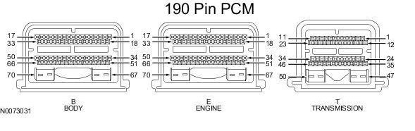 Powertrain Control Module (PCM) Connector - For PCM connector views or reference values, refer to Reference Values.