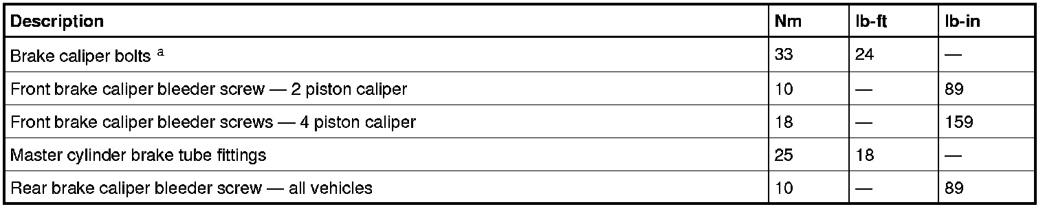 a The bolts retaining the front caliper halves together on 4 piston caliper equipped vehicles are not serviceable.