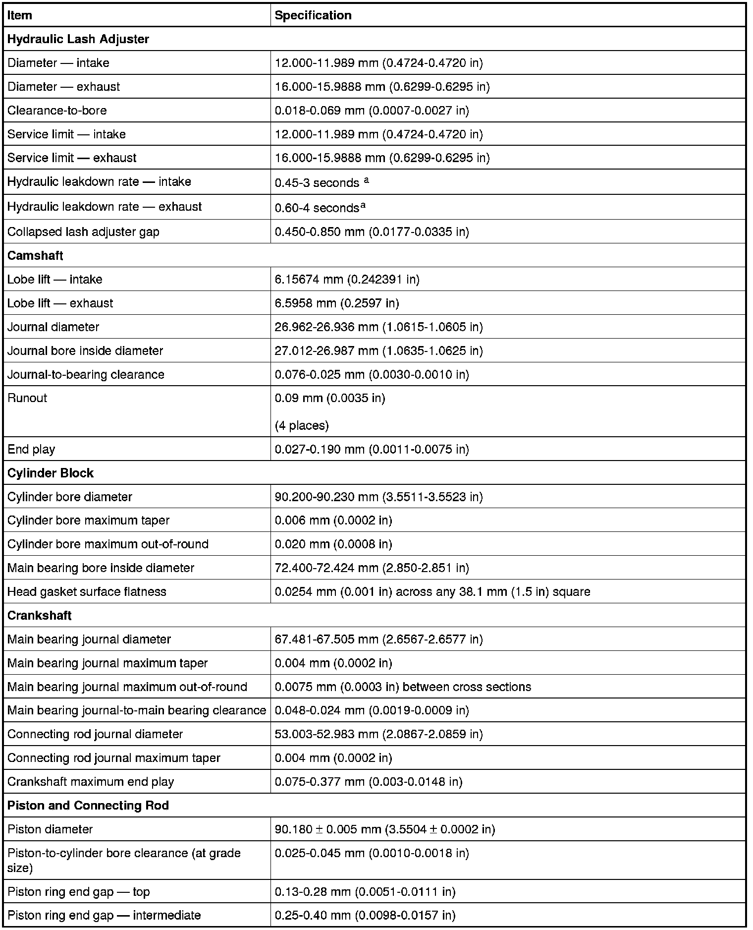 a Time required for the plunger to leak down 1.6 mm of travel with 222 N force and leak-down fluid in the lash adjuster.