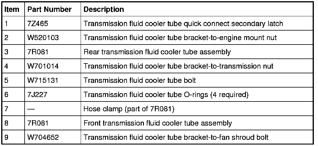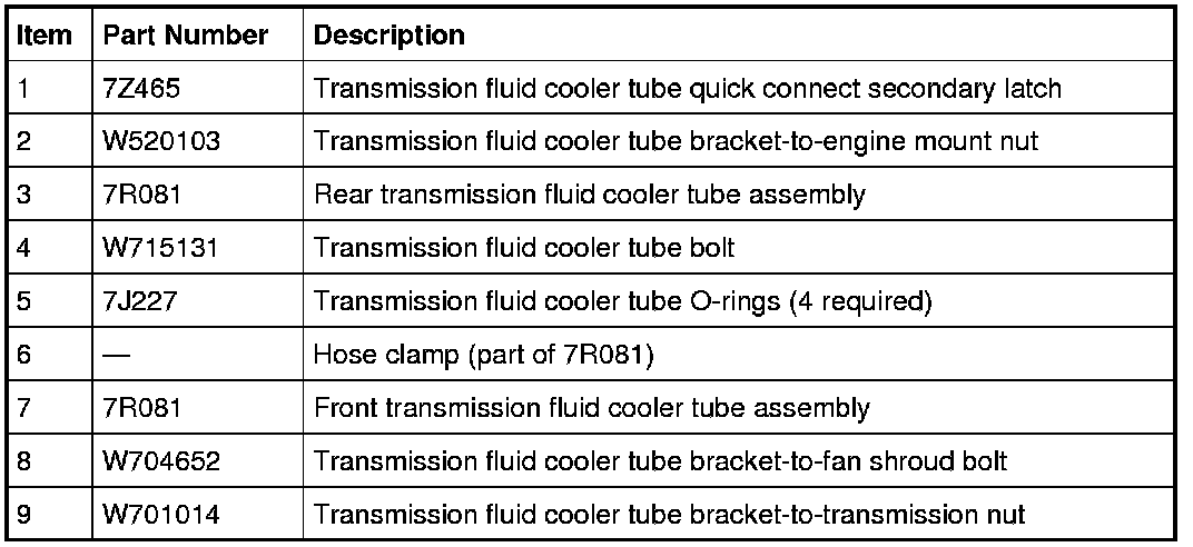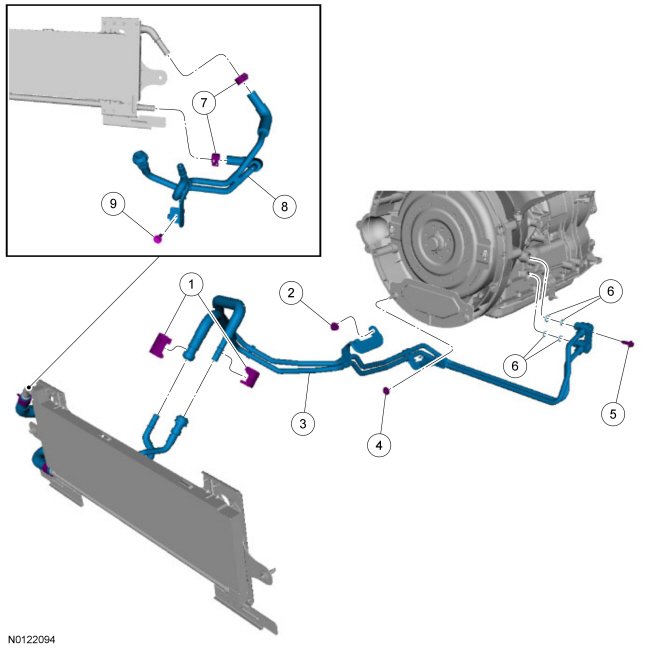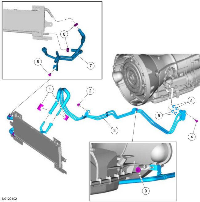 17. Remove the rear transmission fluid cooler tube assembly from the vehicle.