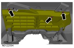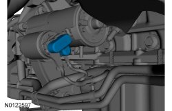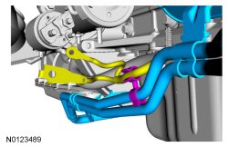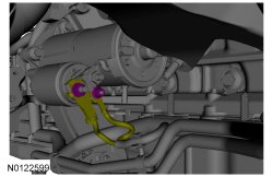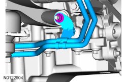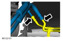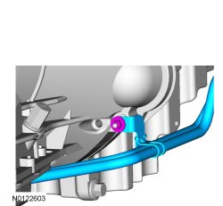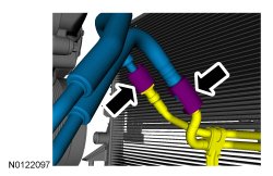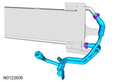 18. Remove the front transmission cooler tube assembly from the vehicle. For additional information refer to, Transmission Fluid Cooler .
