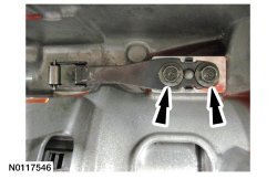 6. Assemble the manual control lever detent plate assembly and park pawl actuator rod.