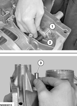 2. Position the park pawl and spring into the case and install the park pawl pin.