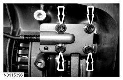 9. Align the roll pin hole in the manual control lever detent plate with the roll pin hole in the manual control lever shaft and install a new roll pin using a suitable tool.