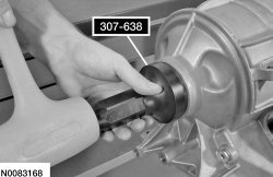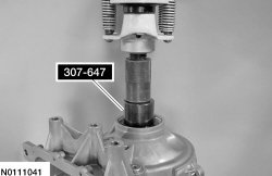 12. Assemble the Front Wheel Hub Oil Seal Installer and the Rear Bearing 4X2 Installer on the Drawbar and install the bearing in the transmission case.