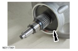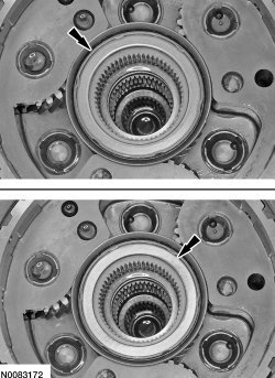 16. Install the T11 bearing, on the planetary ring gear and output shaft assembly.