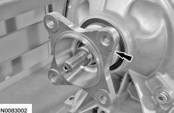 - After installing the new output shaft flange nut, stake the slots to prevent it from coming loose.
