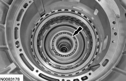 Using the Retaining Ring Pliers, install the center support snap ring. Using a suitable tool, make sure the snap ring is fully seated.