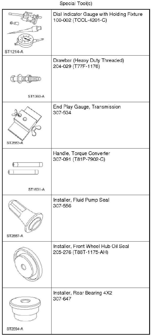 - Lift up on the Transmission End Play Gauge and record the measurement on the Dial Indicator Gauge. The measurement should be between 0.2-0.4 mm (0.008-0.015 in). If the measurement is not within specification, install a new selective front pump shim.