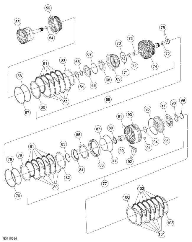 42. Install the forward (A)/overdrive (E) clutch assembly.