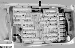 Slightly lift the main control assembly and align the manual valve in the manual valve linkage and position the main control in place.