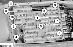 62. Install the transmission fluid pan and transmission fluid pan bolts. Tighten in a crisscross pattern.
