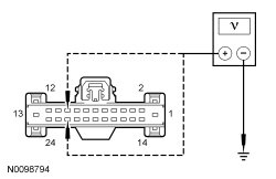 - Measure the voltage between BCM-B (Body Control Module B) C4368A-10, circuit CPW73 (GN/VT), harness side and ground; and between BCM-B (Body Control Module B) C4368A-22, circuit CPW73 (GN/VT), harness side and ground.