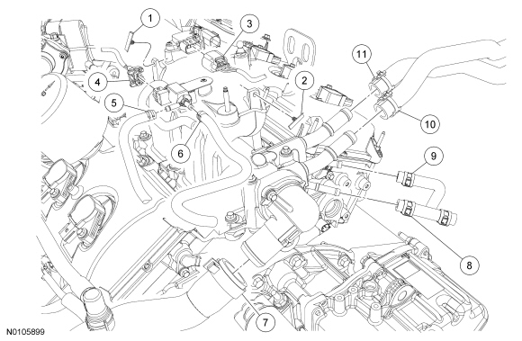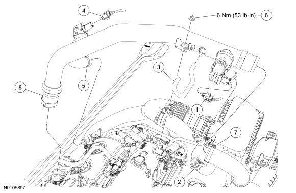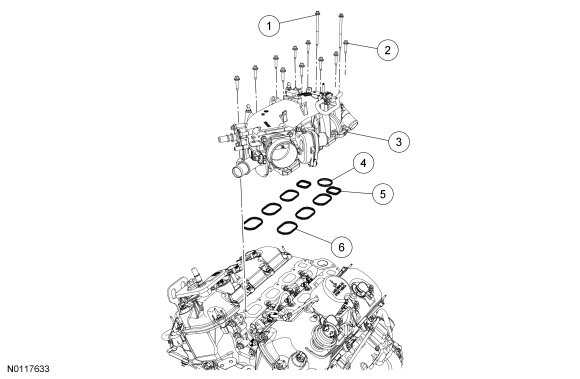 1. NOTICE: If the engine is repaired or replaced because of upper engine failure, typically including valve or piston damage, check the intake manifold for metal debris. If metal debris is found, install a new intake manifold. Failure to follow these instructions can result in engine damage.